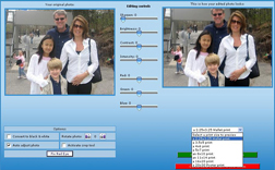 The edit tool will enable you to, correct the Brightness, Contrast, Intensity, Sharpness and Red Eye on your Photograph. You will also be able to convert your photo into a black and white image, crop your photo, conduct an auto adjust and rotate your photo, if desired. While you are editing your photo, the corrections will display on the right of the screen.